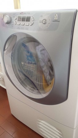 Asciugatrice Hotpoint Aqualtis 8 kg CLASSE B altezza 85cm larghezza 59,50cm profondità 58,50 il display visualizza asciugatura automatica, asciugatura a tempo e partenza ritardata, blocco tasti per bambini. Vendesi 330 euro