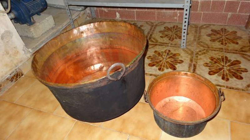 N. 2 paioli in rame con supporto per fiamma a gas. prezzo da concordare. visionabile in monticchio