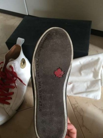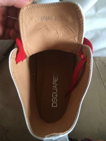Scarpa sneakers dsquared2 num.43 bianca,compresa di sacchettino antipolvere,lacci di ricambio e scatola.vendo causa errata taglia.
