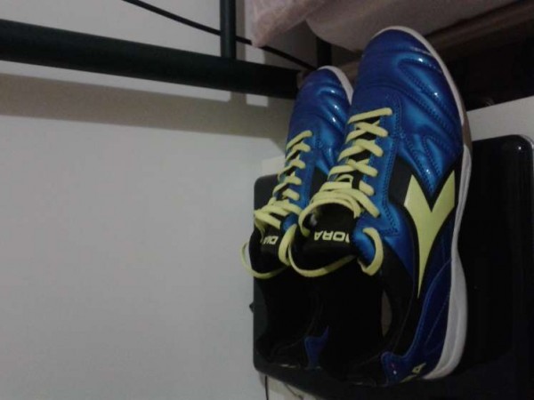 Scarpe da calcetto diadora originali come nuove, indossate una sola volta, azzurre con baffo giallo numero 43. euro 30