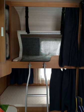 Roulotte rimor 4 comodi posti letto sempre pronti: 1 matrimoniale 146x199 e 2 a castello (1 da 190x78, l'altro da 220x78) dinette centrale. frigorifero da 150l con congelatore separato. comodo bagno con doccia. riscaldamento truma. accessori vari