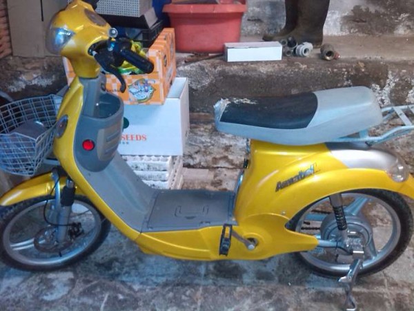 Nell'eventualità in cui si scarichi è utilizzabile come fosse una bicicletta normale. l'unico problema è il sedile un po' rovinato ma facilmente sistemabile. lo scooter è fornito di cestino, luci, frecce e clacson.