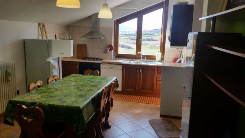 L'aquila al secondo piano di una villa bifamiliare in via bazzanese 11/a gignano mansarda di mq 96 arredata, con balcone, due camere e una cameretta, un bagno, salone con parete arredata a cucina. ben assolata, servita da autobus e scuola bus.