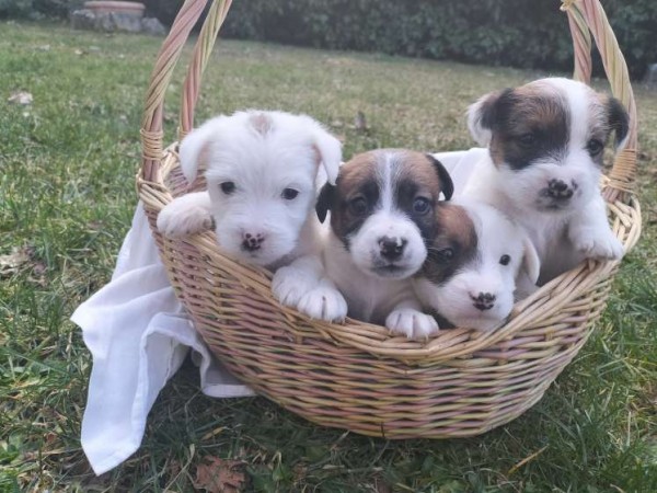 Cucciolata di jack russell terrier, nati in casa, genitori visibili.si cedono con pedigree, iscritti enci l aquila, microchip, ciclo di sverminazione e vaccini, in ottima salute.pelo broken e ruvidi. bene educati.
