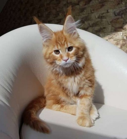 Cucciolo maine coon pedigree red tabby blotched allevamento premiato e con affisso rende disponibile splendido cucciolo rosso tigrato. raggiungerà la nuova casa con microchip, vaccinazioni complete, libretto sanitario e sverminazione.