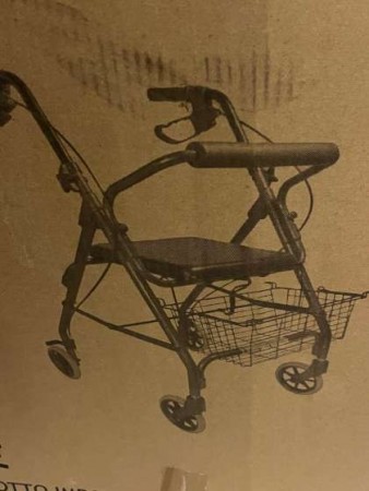 Deambulatore x anziani ripiegabile con seduta imbottita,, 4 ruote e 2 freni.