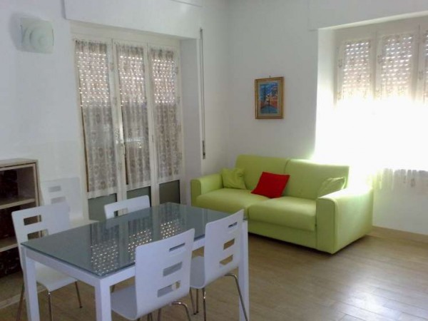 In via volta a 70 metri dal mare, parallela del bellissimo lungomare, grazioso e ben arredato trilocale composto da n. 3 balconi, esposizione sud-est, bagno con box doccia di cm. 150 x 90 ed aspiratore, n.2 camere con balcone.
