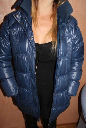 Piumino 'smogh' caldissimo in tessuto impermeabile e interno vera piuma d'oca. colore blu cappuccio con bottoni. il piumino in taglia s o m (specificare la taglia desiderata) è usato. chiusura con cerniera e bottoni automatici 29 euro