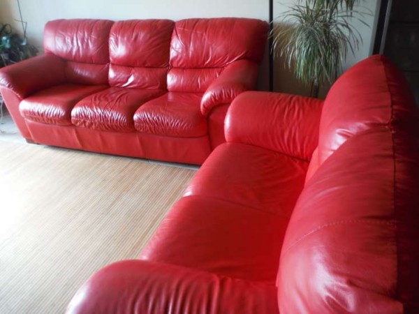 2 divani usati design moderno in vera pelle di colore rosso corallo con piedini in ciliegio. il divano 2 posti è in ottime condizioni (l160xp 95xh90). il divano 3 posti presenta qualche segno di usura (l215x 95h90). venduti solo in coppia. 350 euro