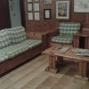 Divano 3 posti con due poltrone e relativo tavolino poggiapiedi con struttura in legno di pino, praticamente nuovo! consegna sul posto. euro 150,00.