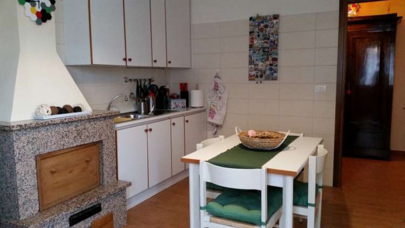 Appartamento primo piano mq.75 interamente ristrutturato: ingresso, ampia cucina arredata con caminetto, salotto, camera matrimoniale con ripostiglio guardaroba, bagno, balcone ed eventuale garage privato, cantina, posto macchina. zona servitissima.