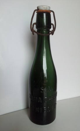 Bottiglia della ditta “s.a. birra dreher - trieste”, in vetro di colore verde adatto a contenere birra, con tappo originale in porcellana bianca. € 20,00 tel. 329-6169093 chieti scalo / bivio s. martino. ventomaresette@alice.it