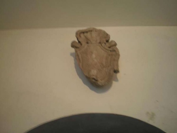 Frammento lapideo decorativo e capitello-peduccio lapideo anno 1000 e alto medioevo e stemma nobiliare 1600 in pietra e antichi mortai in pietra diam. max cm. 45 alto cm. 27 e diam. max cm. 20 alto cm. 13 vedo a l'aquila. occasione