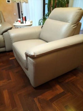 Poltrona di poltrone e sofa' come nuova colore tortora con schease long elettrica, usata pochissimo praticamente nuova, filo elettrico lungo.
