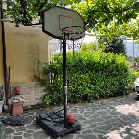 Canestro basket completo di tabellone regolamentare, regolabile in altezza fino a 3,05 mt. pratico supporto da terra fornito di due ruote per gli spostamenti, riempibile d'acqua o sabbia. regalo pallone basket in foto. no spedizione
