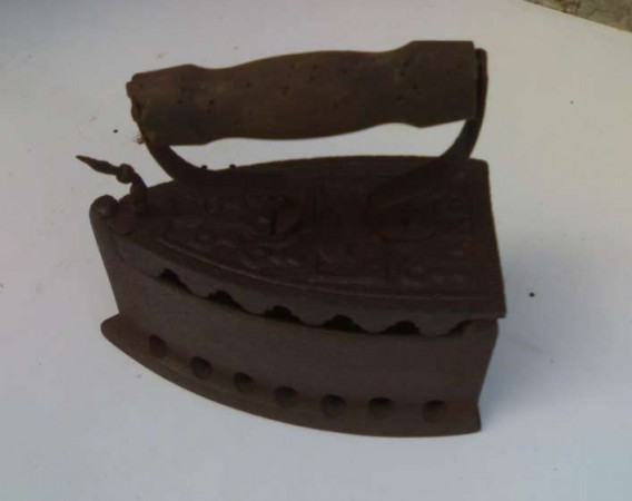 Ferro da stiro a carbone, antico ed originale, marca d.f.b. in ghisa, risalente ad un periodo di antichità compreso tra la fine del 1800 e l’inizio 1900, con manico in legno originale e tarlato. euro 70,00 contatto telefonico cellulare 329-616 9093
