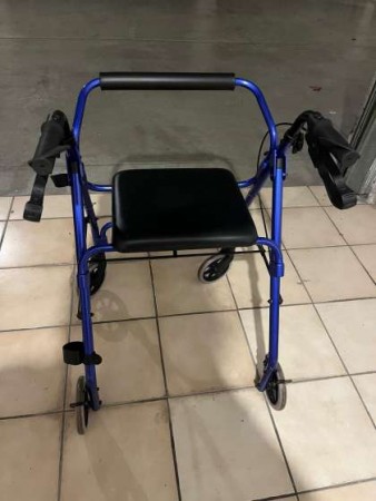 Deambulatore x anziani ripiegabile con seduta imbottita,, 4 ruote e 2 freni.