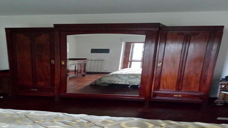 Coppia di comodini in legno con pianali in marmo, armadio con specchio, comò in legno con specchio e pianale in marmo, cassettone in legno, settimino in legno tutti autentici e in ottimo stato